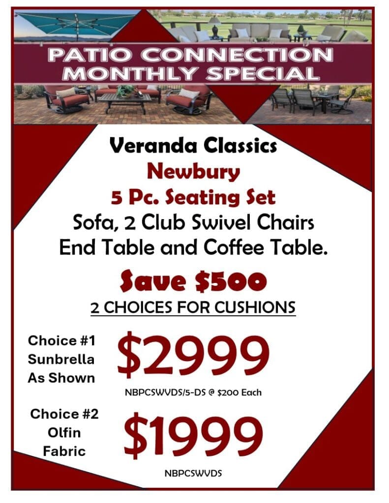 Ready to upgrade your outdoor space? Connect with us today and discover why Patio Connection is the trusted choice for high-quality patio furniture in Tucson, Southern Arizona and Green Valley. Our friendly team is here to help you select the perfect items for your home, ensuring satisfaction with every purchase.